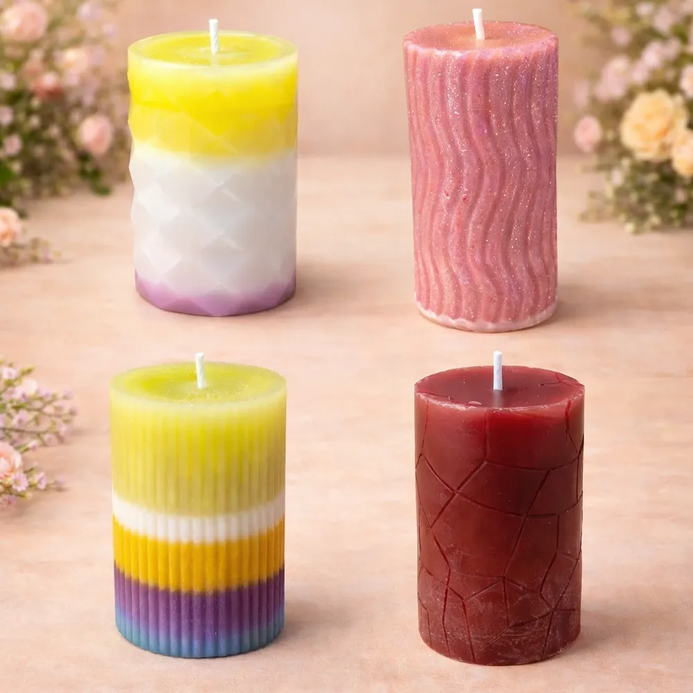 Diese handgegossene Designkerze verbindet modernes Formgefühl mit liebevoller Handarbeit. Die klare Zylinderform wird durch eine fein strukturierte Oberfläche ergänzt – je nach Variante geometrisch, geriffelt, organisch oder wellenförmig. So wird jede Kerze zu einem stilvollen Blickfang auf Tisch, Regal oder Sideboard.