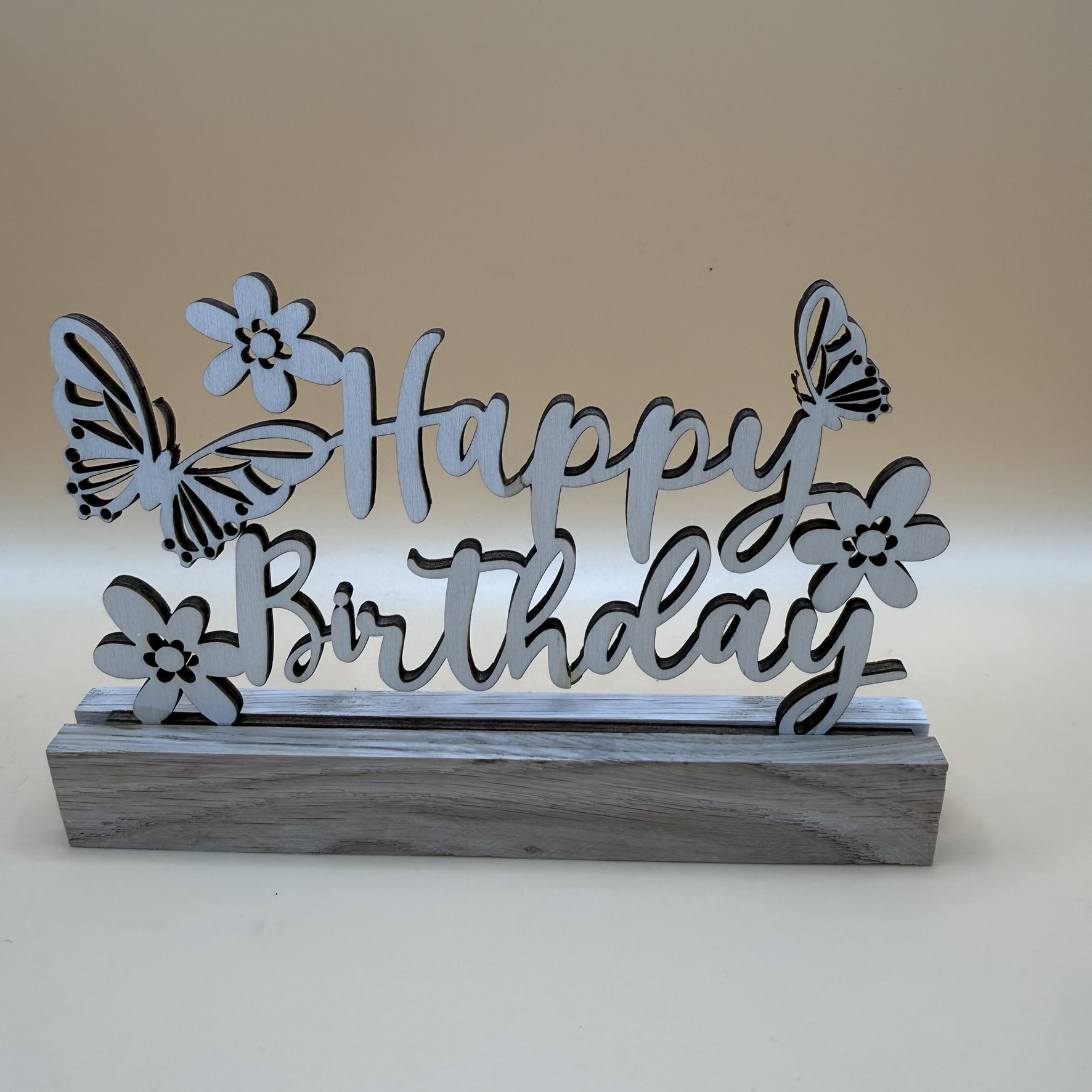 Happy Birthday Schriftzug aus Holz mit Blumen & Schmetterlingen – handgefertigte Geburtstagsdeko