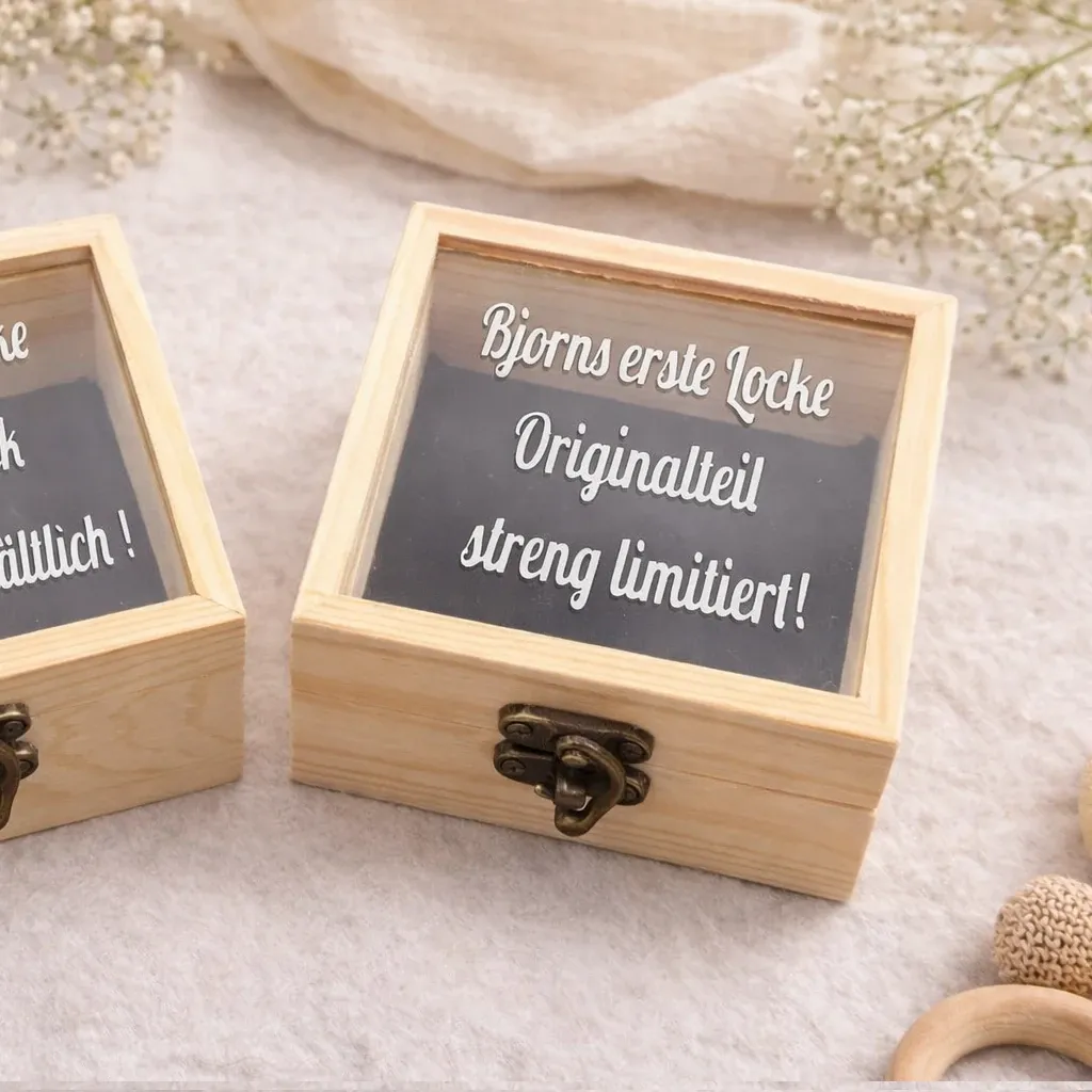 Durch die individuelle Personalisierung mit Namen, Datum oder Wunschtext wird jede Kiste zu einem einzigartigen Einzelstück. Perfekt als Geschenk zur Geburt, Taufe, zum Geburtstag oder als liebevolles Andenken für später.