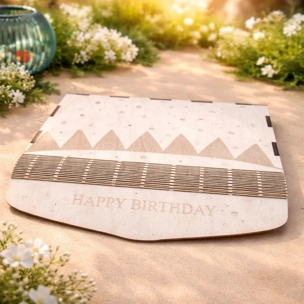 Dieser liebevoll gestaltete Geburtstagsumschlag aus Holz ist eine besondere Alternative zur klassischen Geburtstagskarte.