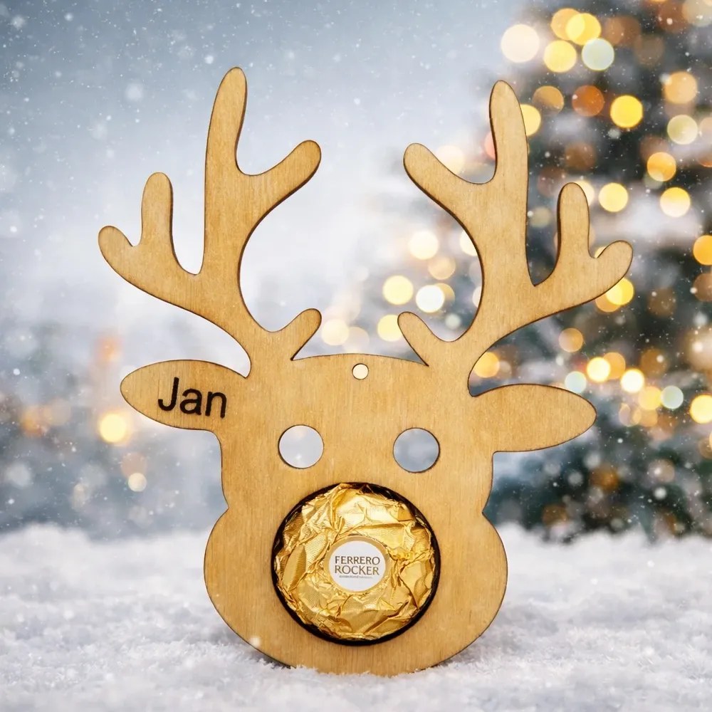 Personalisierter Rochee-Elch aus Birkenholz – graviert & gelasert | Weihnachtsgeschenk