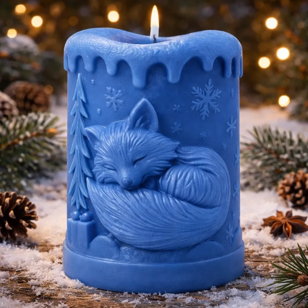 Diese liebevoll handgegossene Waldfuchs-Kerze ist mehr als nur eine Lichtquelle – sie ist ein kleines Kunstwerk. Der schlafende Fuchs, eingebettet in eine winterliche Waldszene mit Tannen und sanft herablaufenden Wachstropfen, macht jede Kerze zu einem besonderen Blickfang.